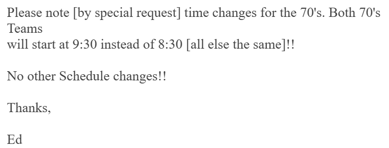 Here is where you will find information about upcoming tournaments, dates, times, and fields.